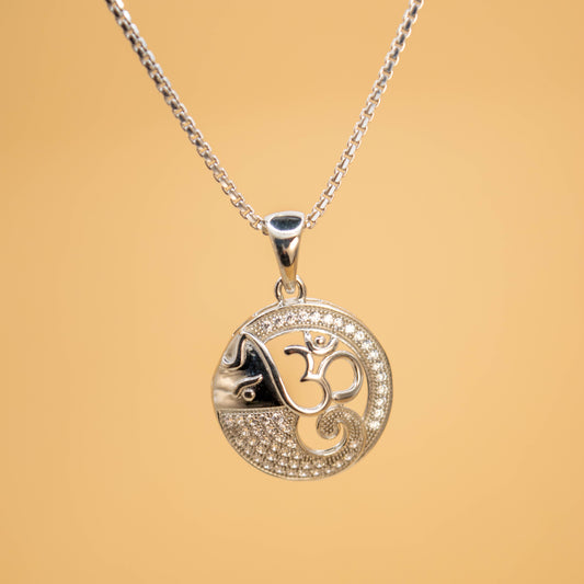Silver Om Pendant (White CZ Gemstones, Rhodium plating, Pendant only, without chain)