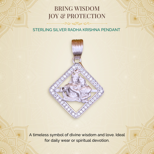Sterling Silver Radha Krishna Pendant (White Cz Gemstones, Rhodium plating / Matte finish, Pendant only, without chain)