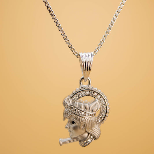 Sterling Silver Shri Krishna Pendant (White Cz Gemstones, Rhodium plating / Matte finish, Pendant only, without chain)