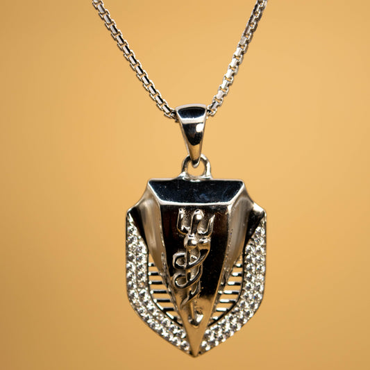 Sterling Silver Trishul Lingam Pendant (White Cz Gemstones, Rhodium plating, Pendant only, without chain)