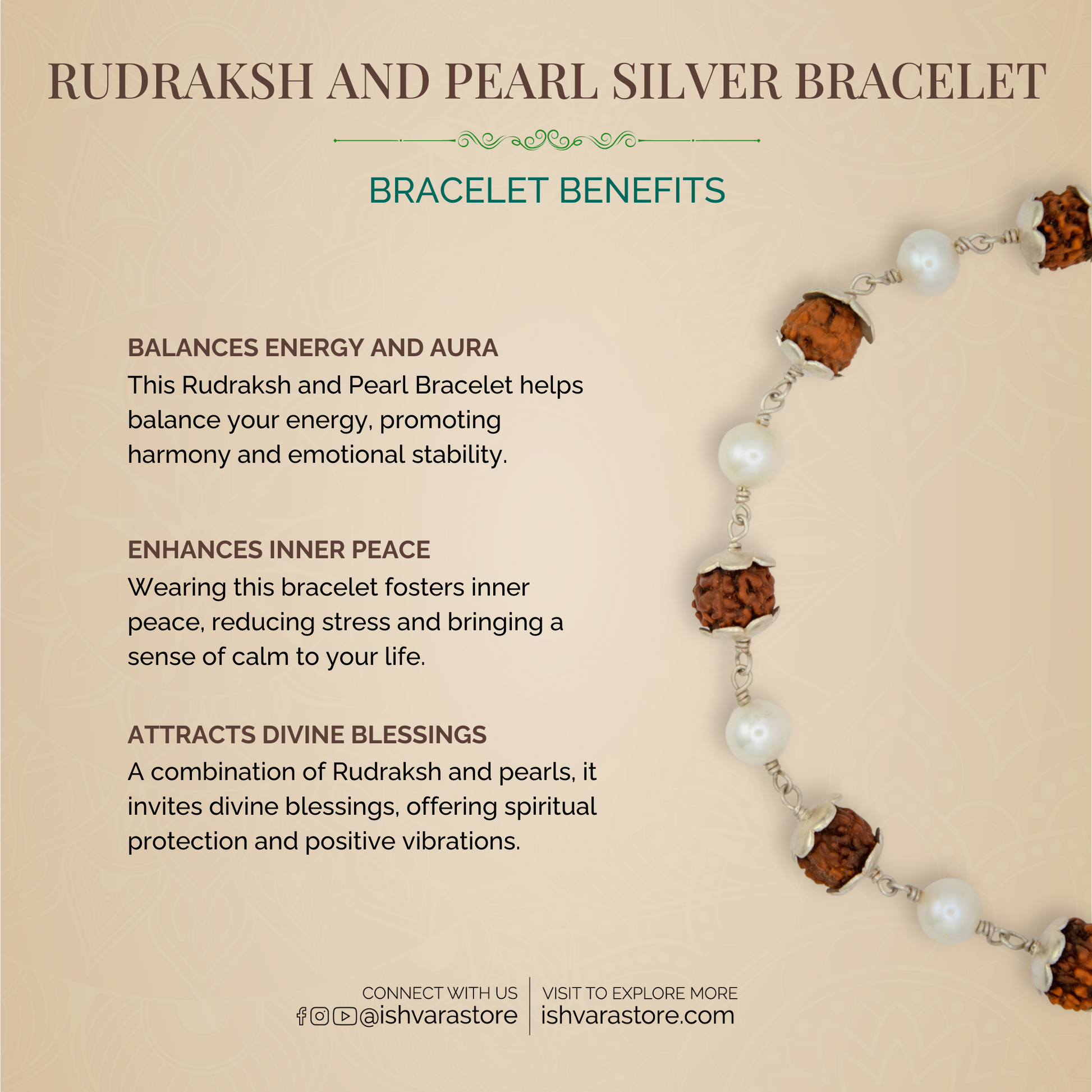 The fusion of silver, Rudraksh, and pearls creates a timeless, meaningful piece perfect for everyday wear. Elevate your spiritual journey while adding a touch of elegance to your collection.